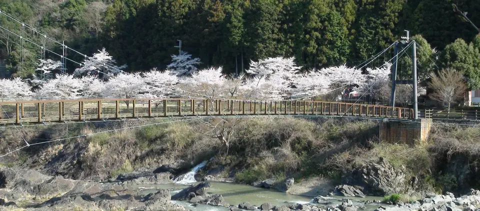 - 吊り橋を渡った先にはキャンプもできるスペースが整備されている。
